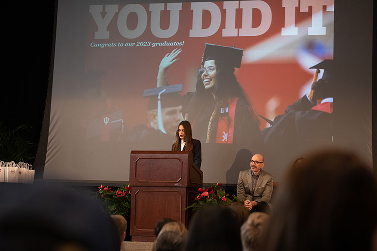 I’ve spent much of February on the road meeting alumni and friends from all over the country. Thank you to the Chicago alumni who hosted our students in their offices at FleishmanHillard, Optimus, the Big Ten Network, BCW, Leo Burnett, Publicis Media, the Chicago Tribune, and Mode Project early in the month for our Chicago Career Trek. The annual event gives our students a glimpse into the careers they’re considering. In Indianapolis, I enjoyed talking about mental health depictions in film with alumni and friends at the IU Alumni Association’s Weekend U. And I’m looking forward to meeting alumni in Washington, D.C., for the Weekend U there this weekend. I’ll be moderating a panel, “Journalistically Speaking: Covering the Capitol,” featuring four of our esteemed alumni.